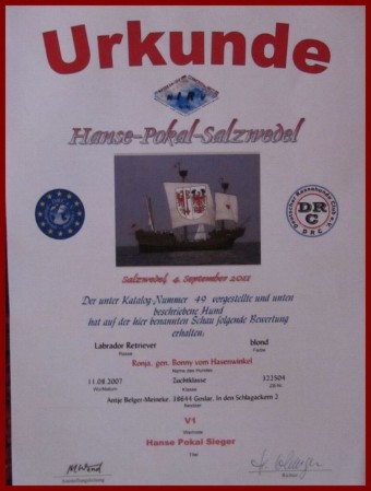 Wir haben die Hundeschau in Salzwedel besucht und Ronja hat wie immer die V1 (Bestnote) erhalten. Natürlich sind wir mächtig stolz auf unsere hübsche !